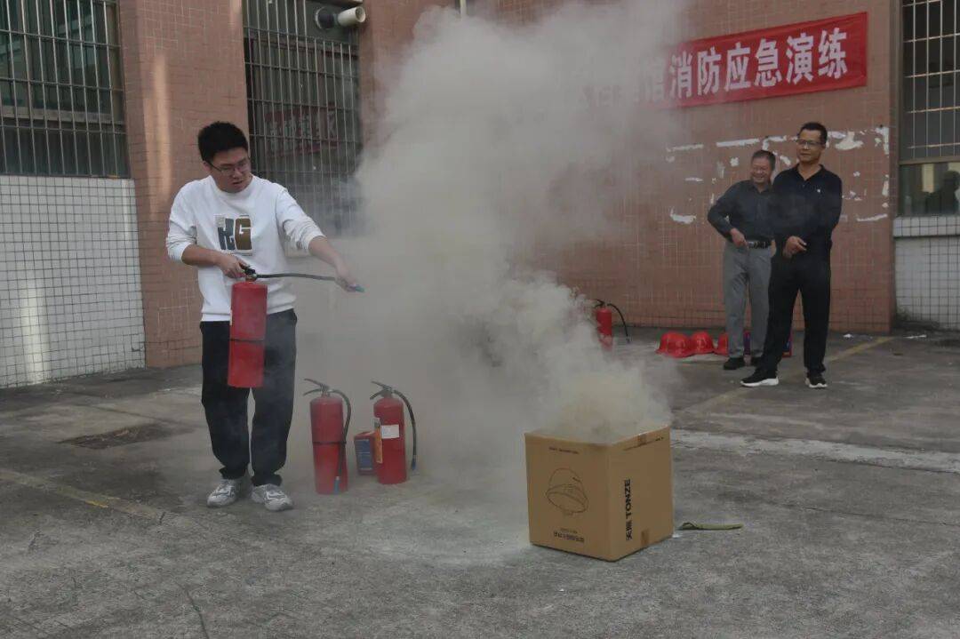 现场演示了灭火器“提、拔、握、压”的尺度用法,,组织开展消防平安培训暨应急分散练习训练勾当。切实做到警钟长鸣、及早防备。哈腰捂鼻、快速有序撤离至平安区域。