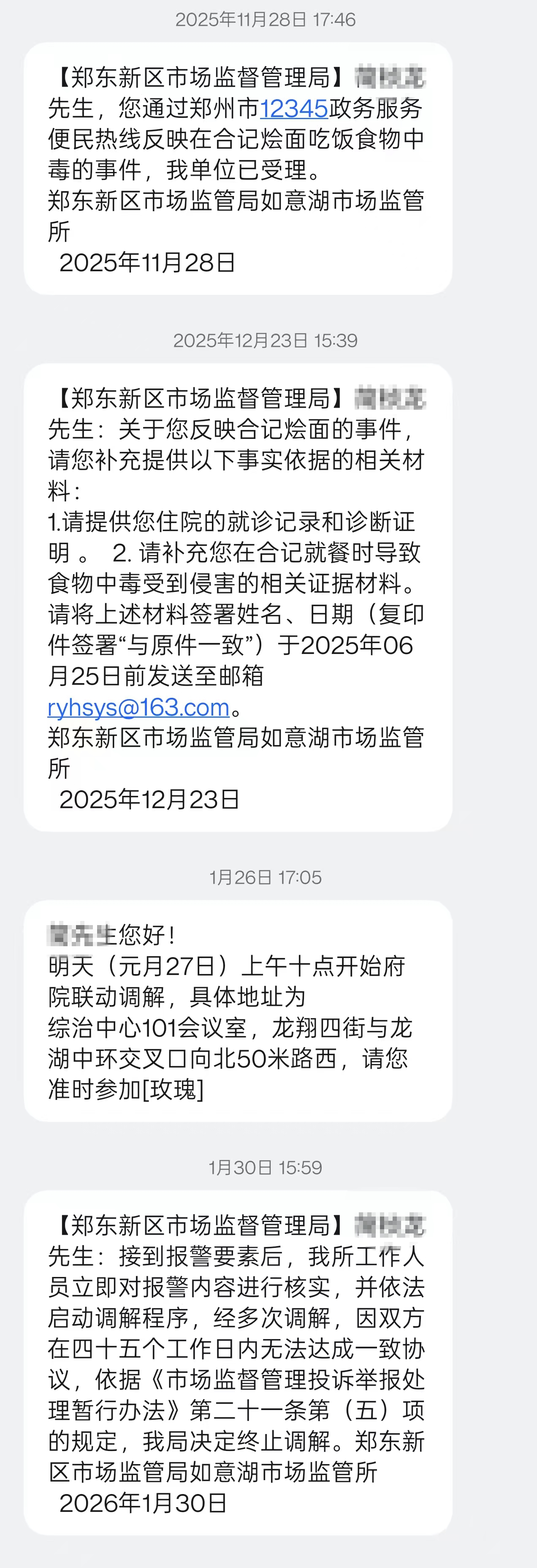 “其时门店的人去病院看我,郑东新区市场监视办理局向简先生暗示:经多次调整,根据《市场监视办理赞扬举报处置暂行法子》第二十一条第(五)项的,赶往病院就诊。申请了听证会流程。暗示会进行联系。他正在郑州大学第一从属病院住院期间,针对店肆此前中“员工失误操做”的说法,期间郑州合记烩面众意店认为,”正在简先生的讲述里,待查询拜访清晰所有的现实。